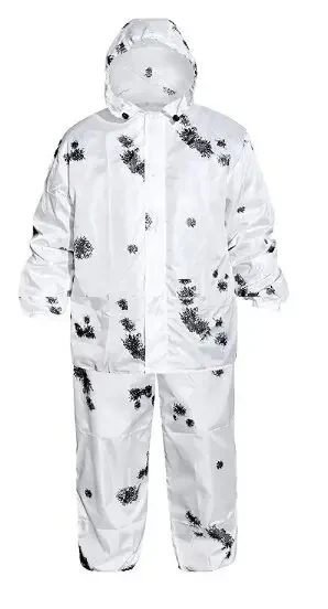 Для мисливця або військового, чиє завдання — залишатися непомітним на місцевості, необхідний маскувальний костюм. Зимовий маскхалат має характерну біле забарвлення з розлученнями-плямами чорного кольору. Це легкий костюм для носіння поверх іншого одягу — його маса всього 300 грамів, завдяки чому він не обтяжить ваш рюкзак.